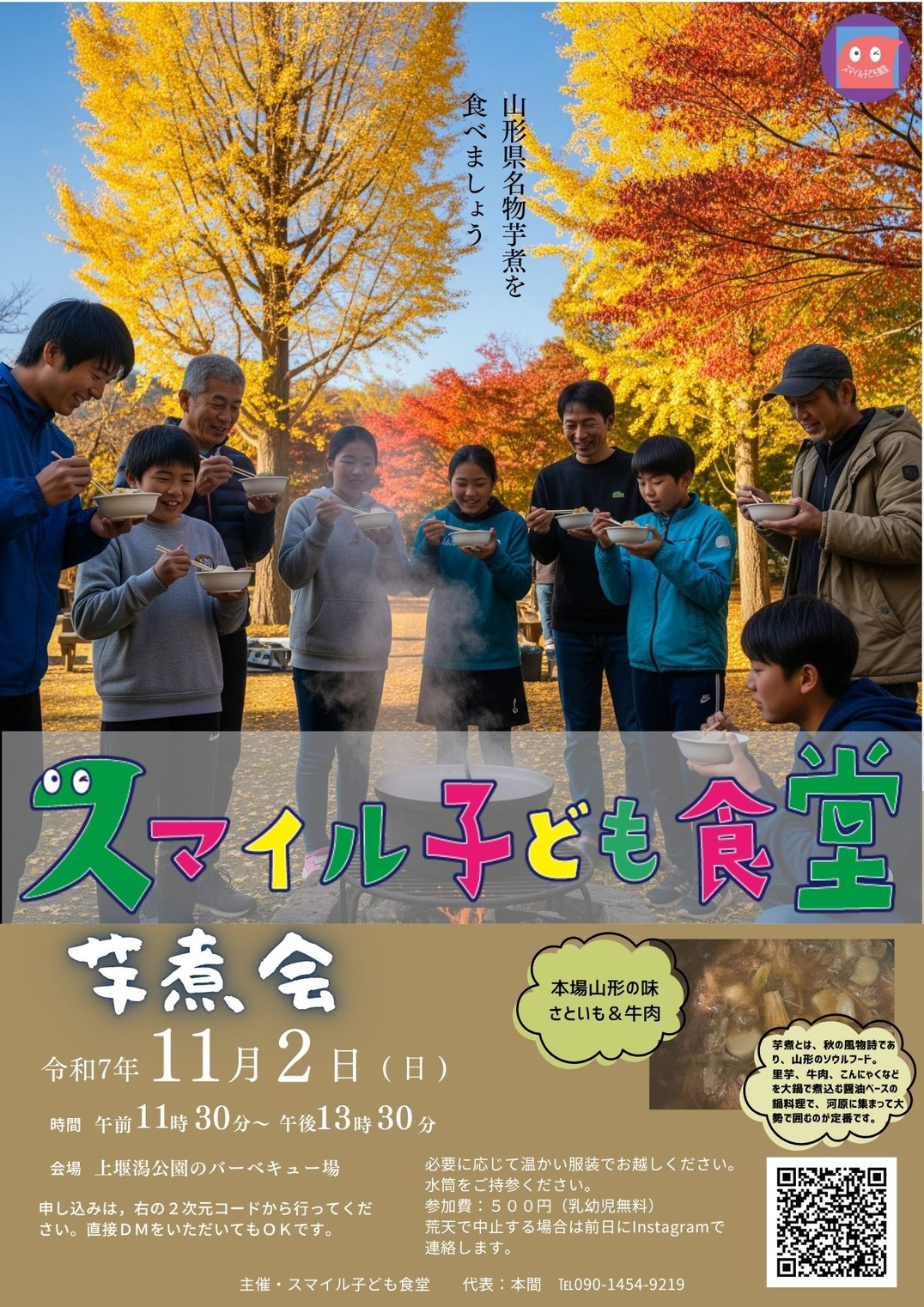 - 芋煮会山形名物「芋煮」をみんなで食べよう!😊 すっかり秋らしい気候になりましたね!🍂スマイル子ども食堂では、美味しいイベントを開催します! 今年は、秋の味覚の王様、山形名物「芋煮」をみんなでわいわい食べる【芋煮会】です! 本場 […]