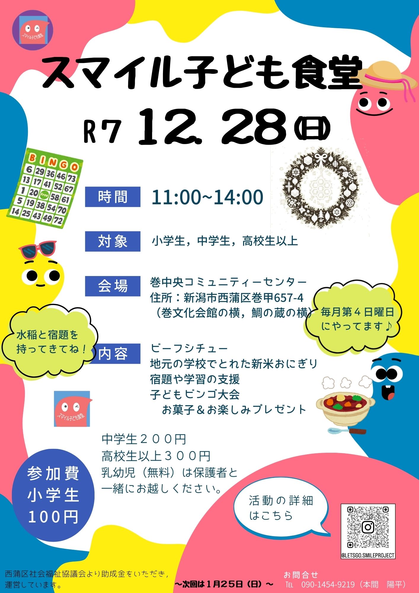 - スマイル子ども食堂秋も楽しいこと、美味しいものが盛りだくさん!初めての方も大歓迎です✨ 10月18日(土)のスマイル子ども食堂今月は第3土曜日に開催します🙌• 日時: 10月18日(土)11:00~14:00• 場所: 巻中央コミュニティ […]