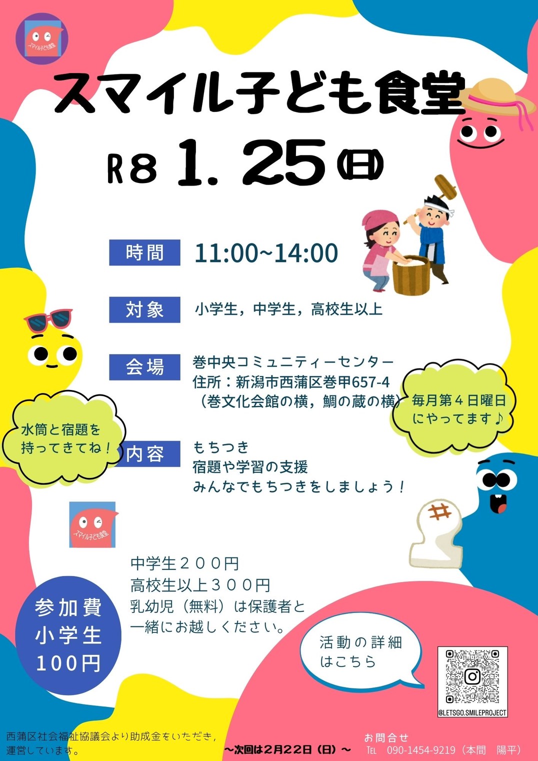 スマイル子ども食堂・学びの広場カラフル コラボ企画 角田山登山イベントのお知らせ新潟市西蒲区でスマイル子ども食堂を運営しております、本間です。この度、「学びの広場カラフル」さんと協力し、地域の皆様と一緒に楽しむ角田山登山 […]