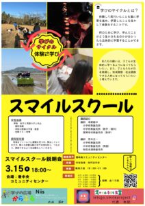 【新事業「スマイルスクール」開校のお知らせ】 いつも「スマイル子ども食堂」を見守っていただき、ありがとうございます。この度、新潟市西蒲区巻地区にて、新しい学びの場「スマイルスクール」を4月からスタートすることになりました […]